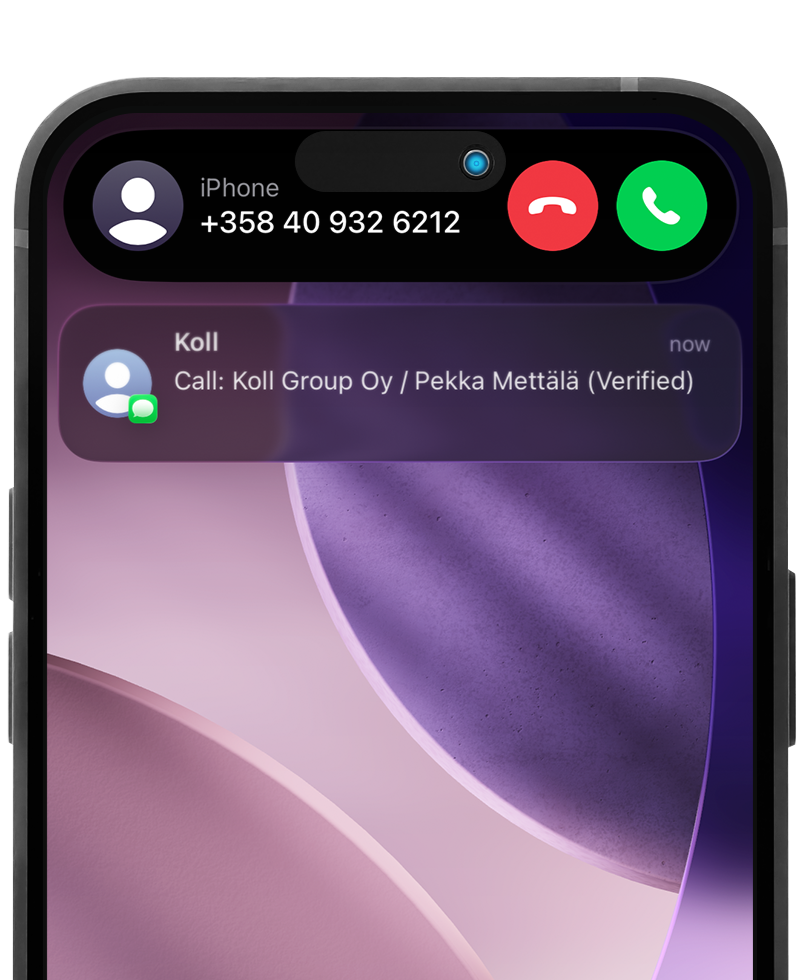 Puhelun vastaanottajalla ei tarvitse olla Koll-sovellusta - toimii kaikille matkapuhelinnumeroille